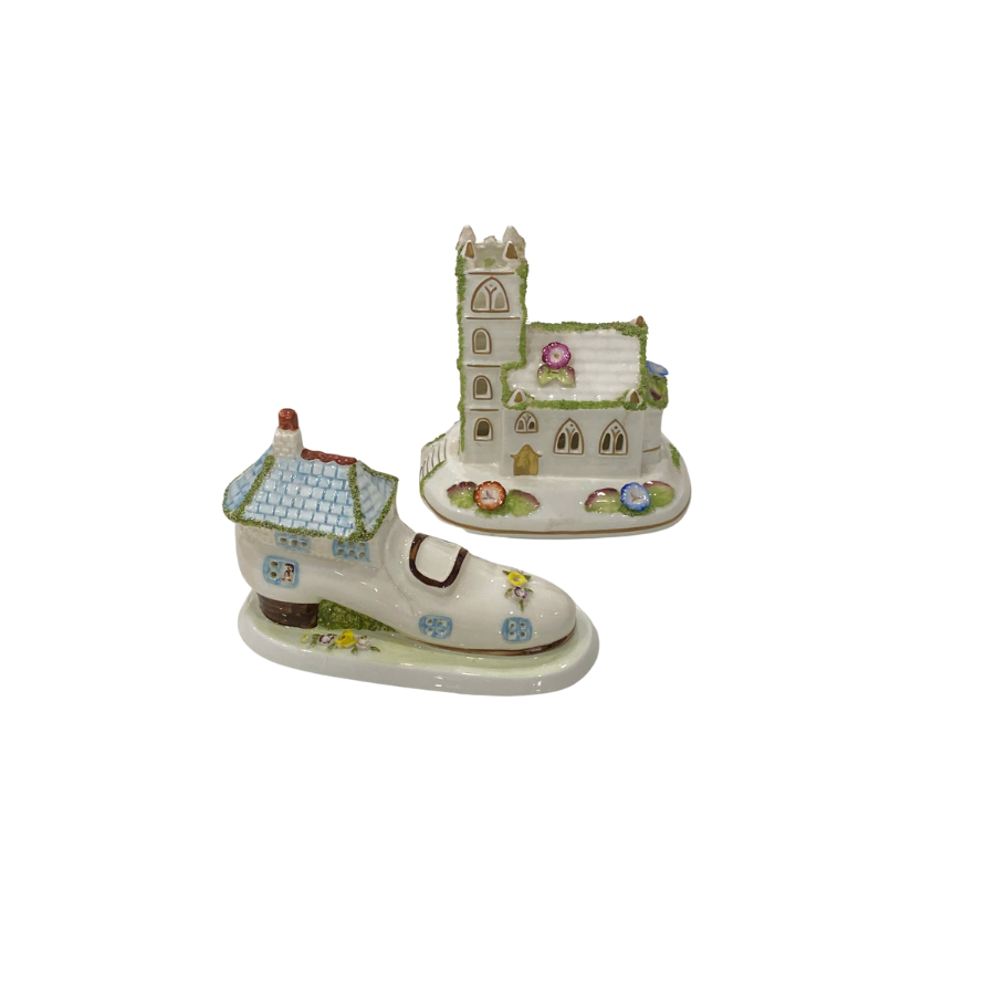 Nhà thờ mini: Kiến trúc gothic đặc trưng của nhà thờ Anh hoặc Pháp cổ, tường trắng, mái ngói rêu xanh, điểm xuyết hoa màu pastel.